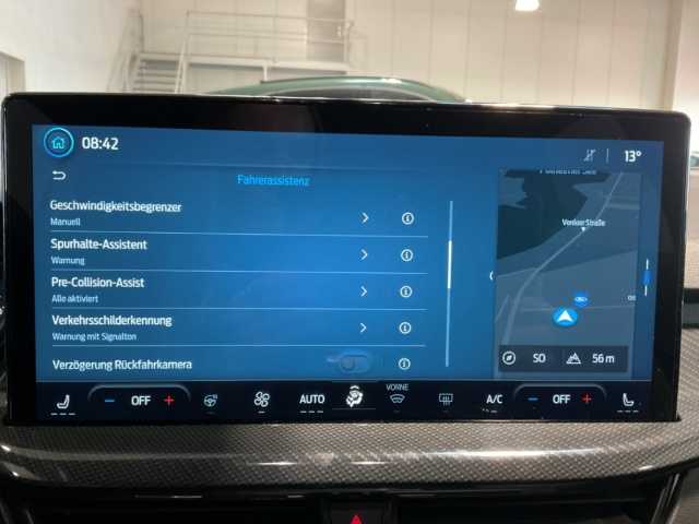 - Fahrassistenz-Paket: Scheibenwischer mit Regensensor, Adaptive Geschwindigkeitsregelanlage (Adaptive Cruise Control / ACC), Rückfahrkamera mit Split View, Fahrassistenz-System: Ausweich-Assistent (Evasive Steer Assistance, ESA), Fahrassistenz-System: Intelligent Drive Assist, teilautomatisierte Fahrassistenz, Fahrassistenz-System: Fahrspur-Pilot, Fahrassistenz-System: Verkehrsschildassistent, Fahrassistenz-System: Falschfahrer-Warnfunktion, Fahrassistenz-System: Totwinkel-Assistent, Cross Traffic Alert und Notbremsfunktion, Außenspiegel elektr. anklappbar